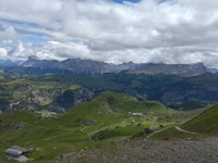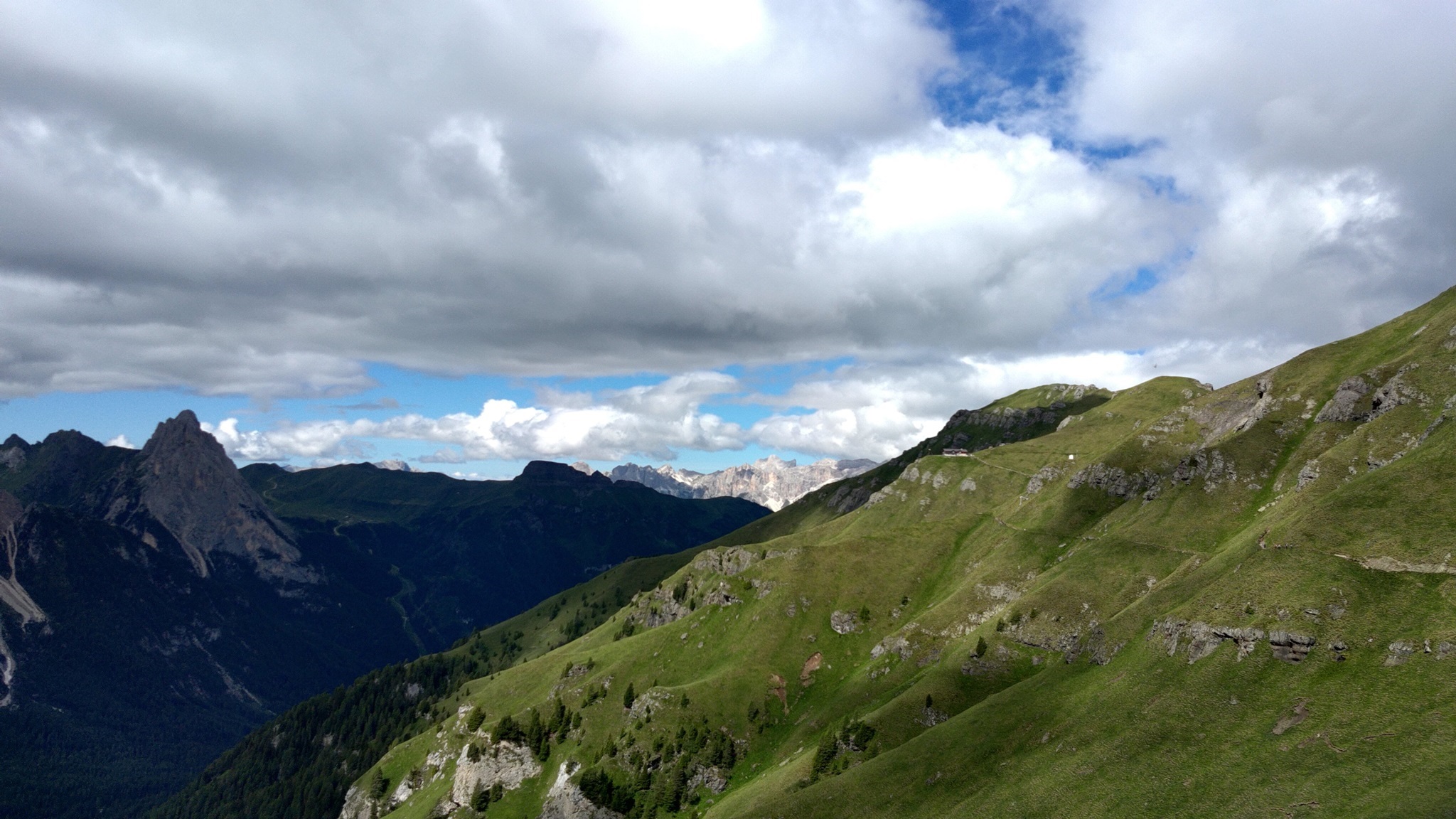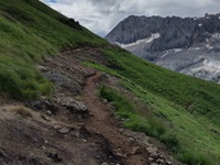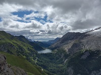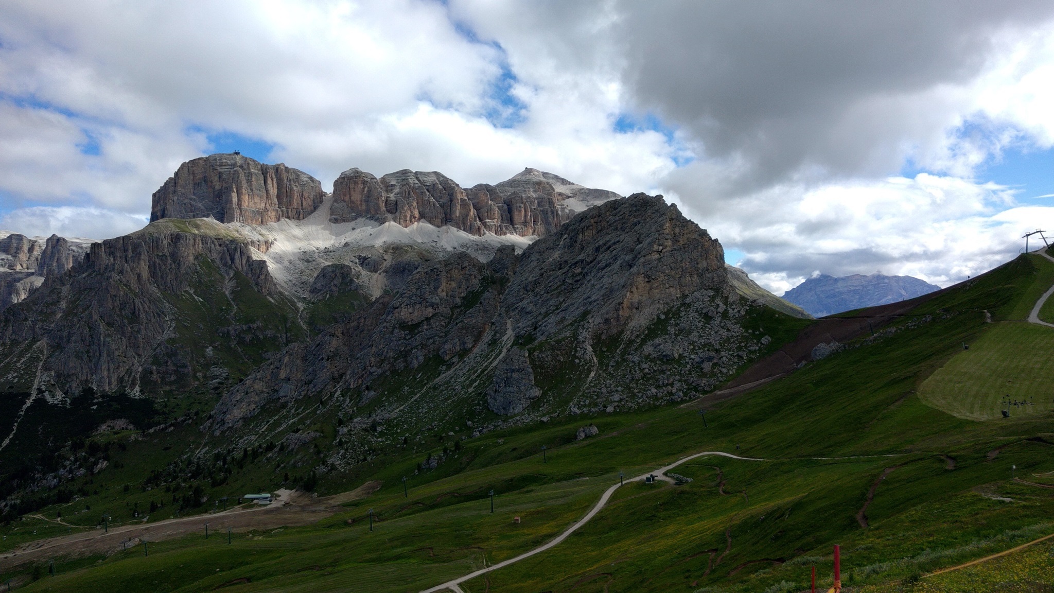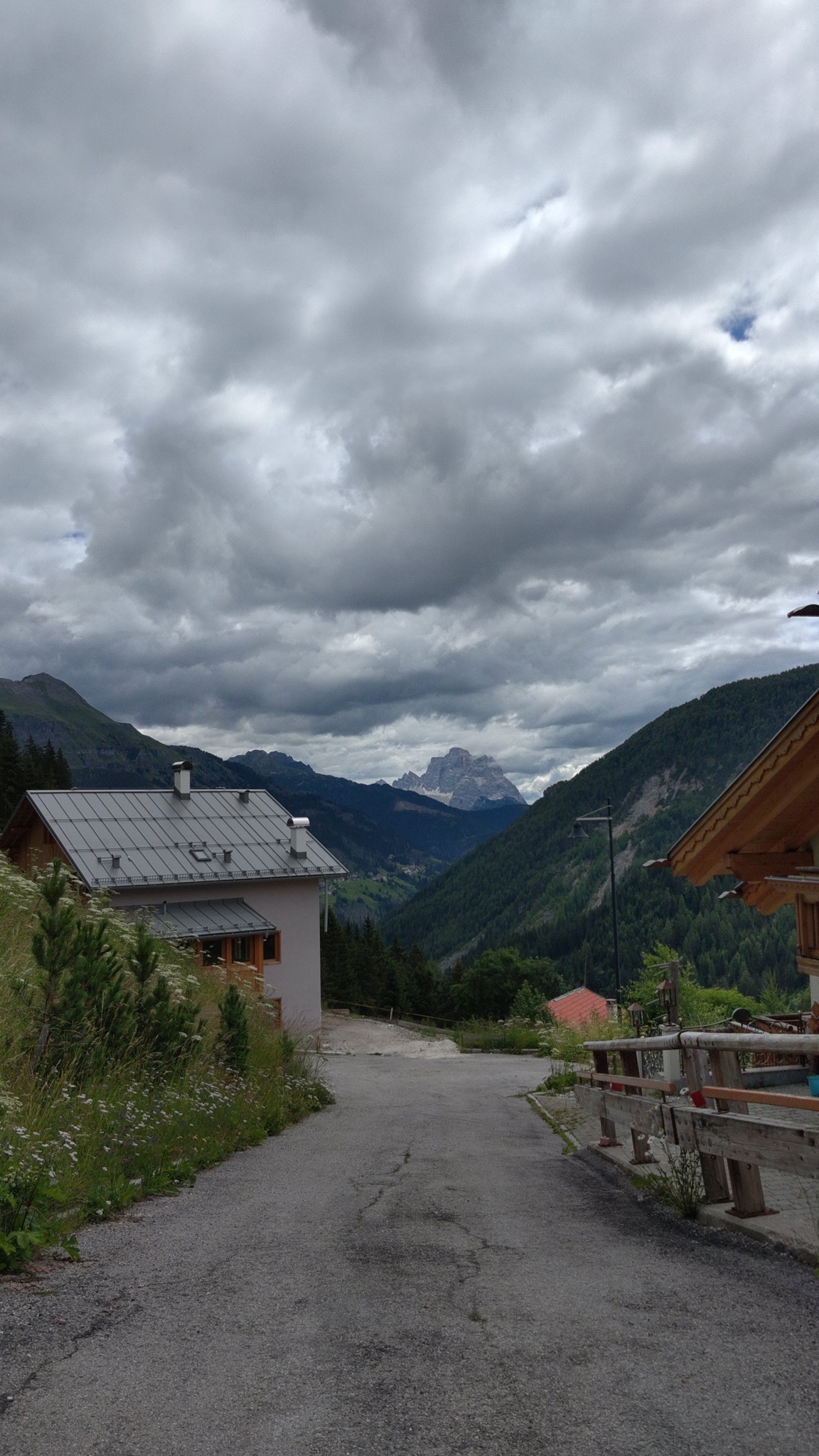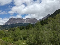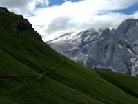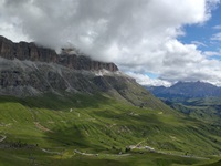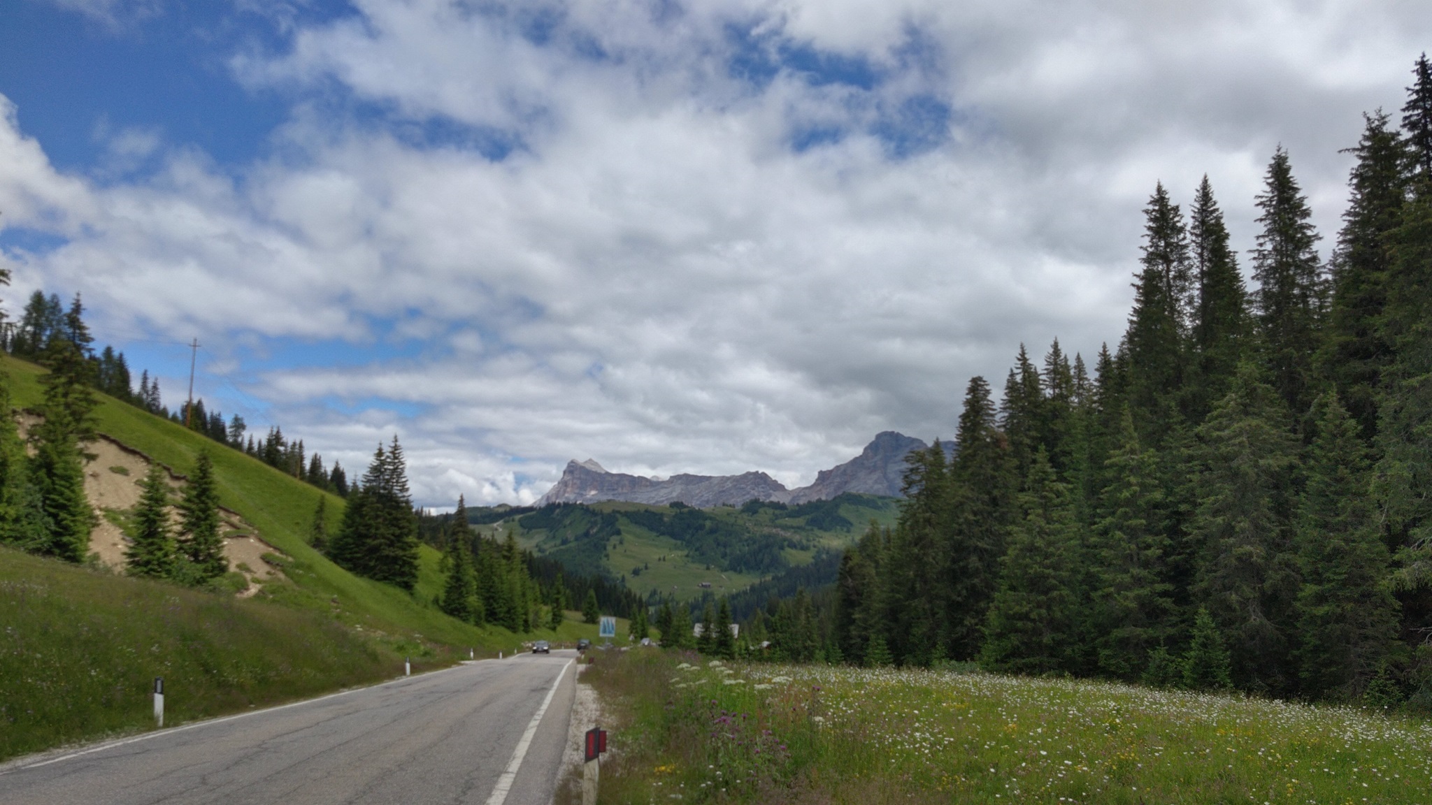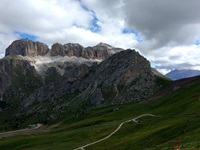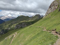 Am Hang entlang geht es dann rüberüber Rifugio Luigi Gorza nach Arraba und über die Straße hoch zum Passo Campolongo.