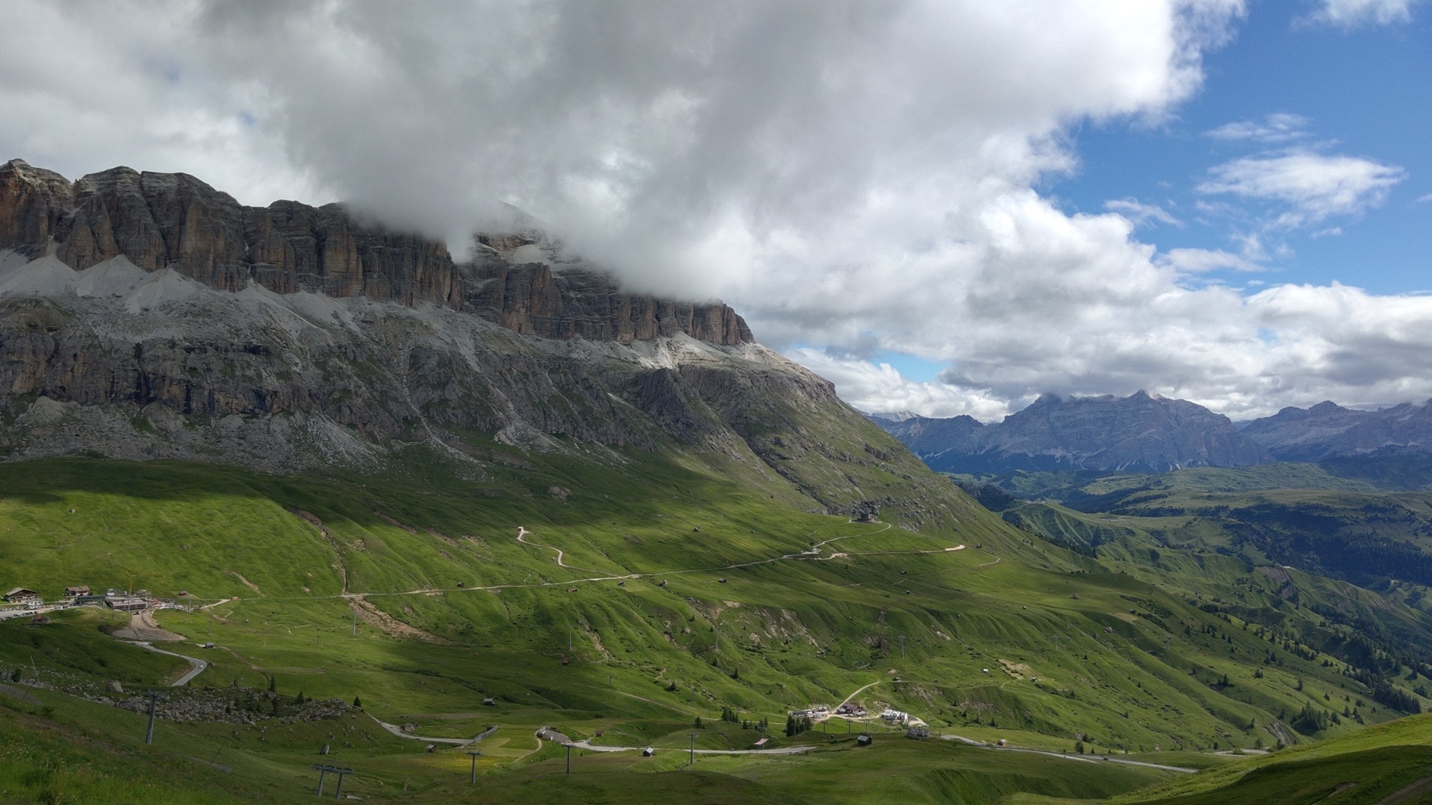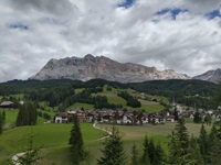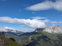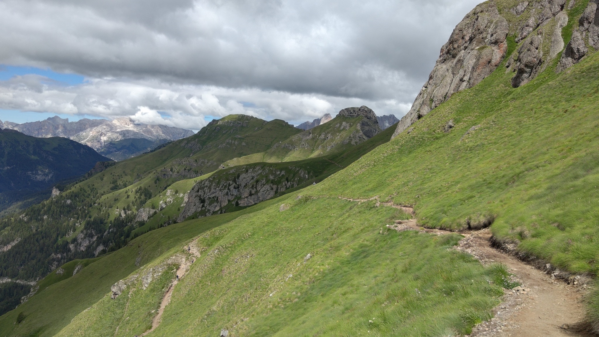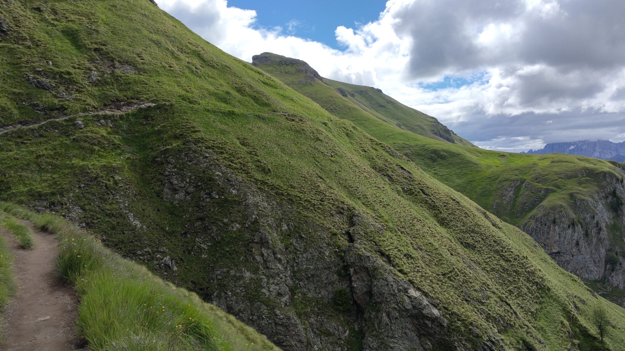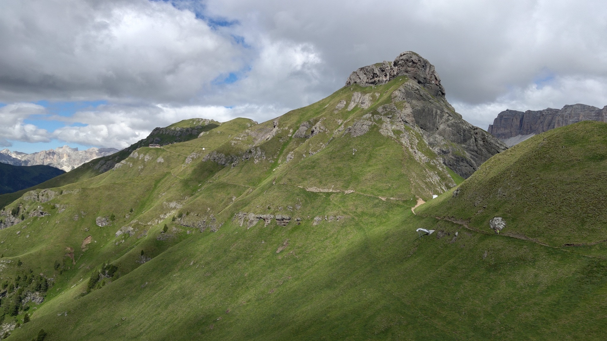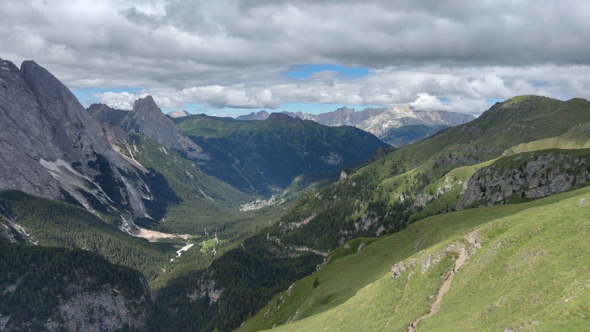 Am Hang entlang geht es dann rüberüber Rifugio Luigi Gorza nach Arraba und über die Straße hoch zum Passo Campolongo.