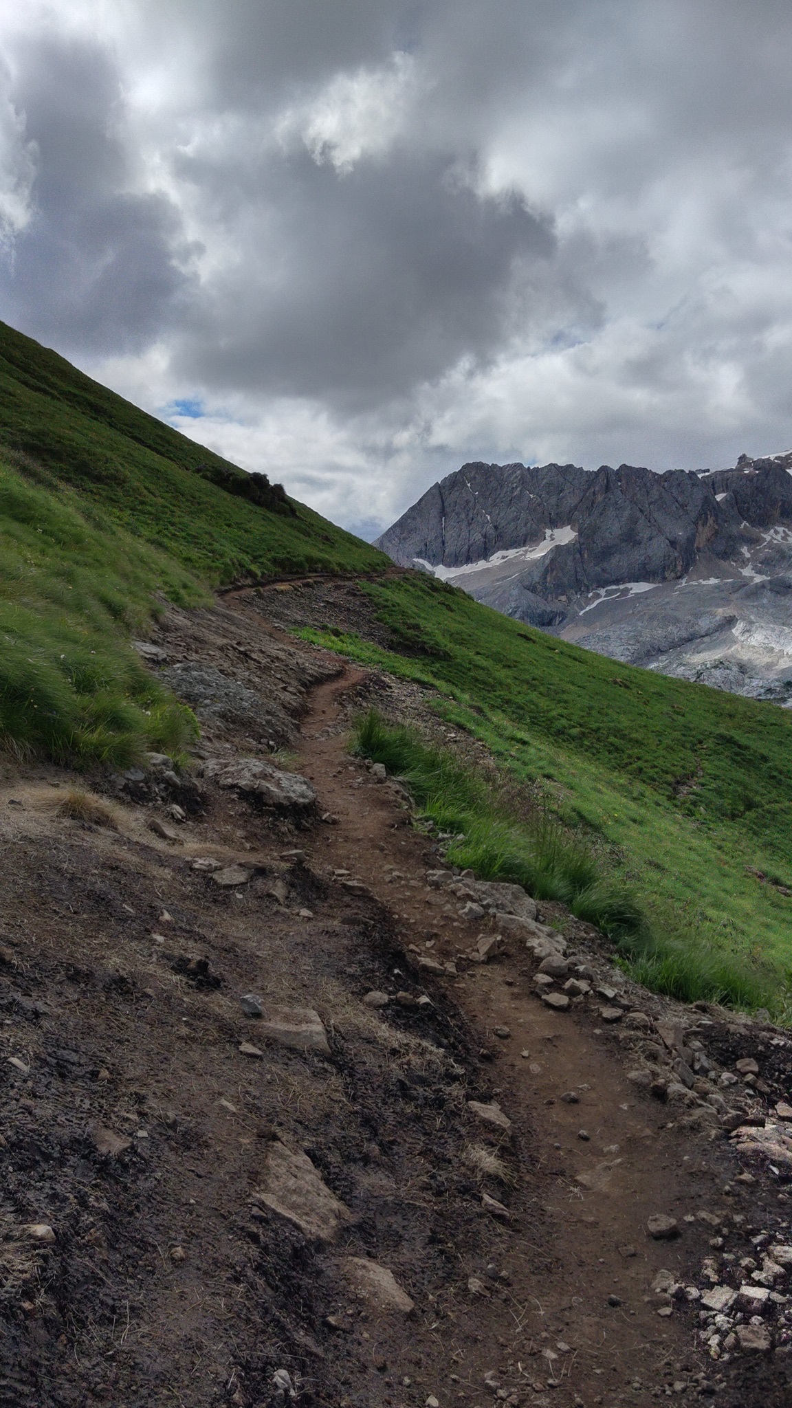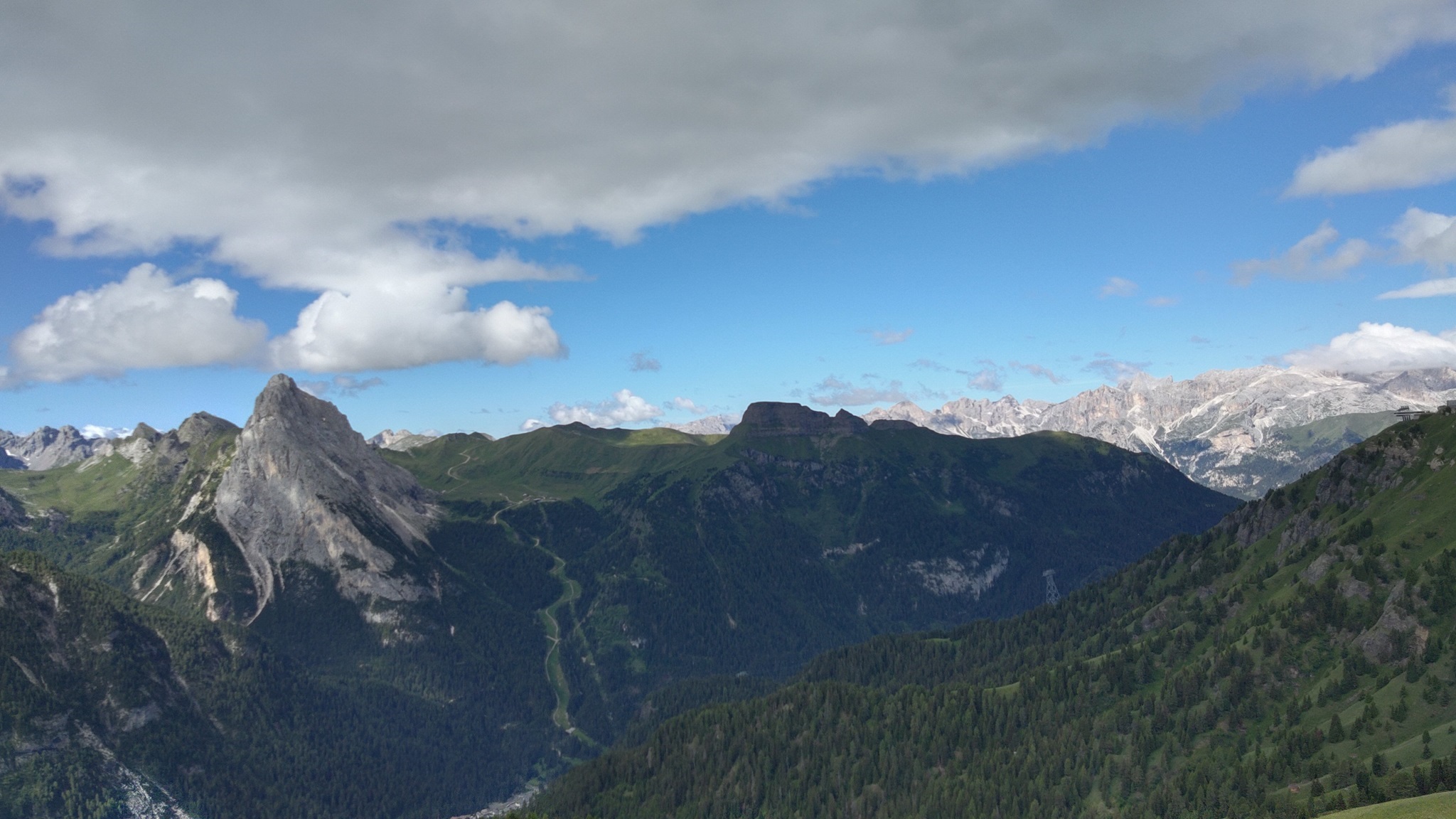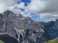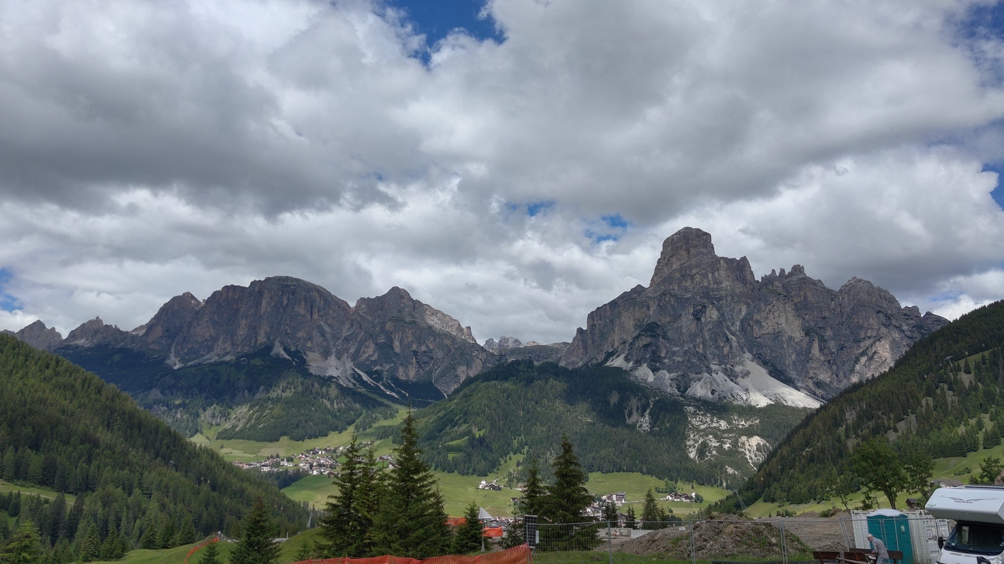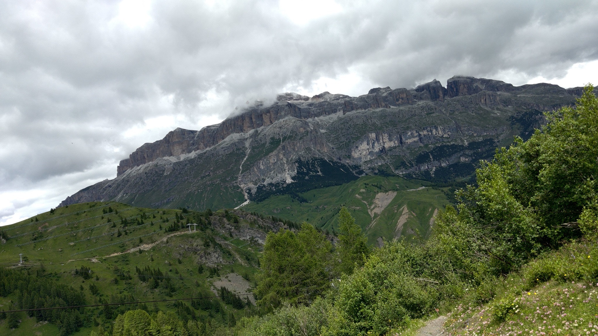 Am Hang entlang geht es dann rüberüber Rifugio Luigi Gorza nach Arraba und über die Straße hoch zum Passo Campolongo.