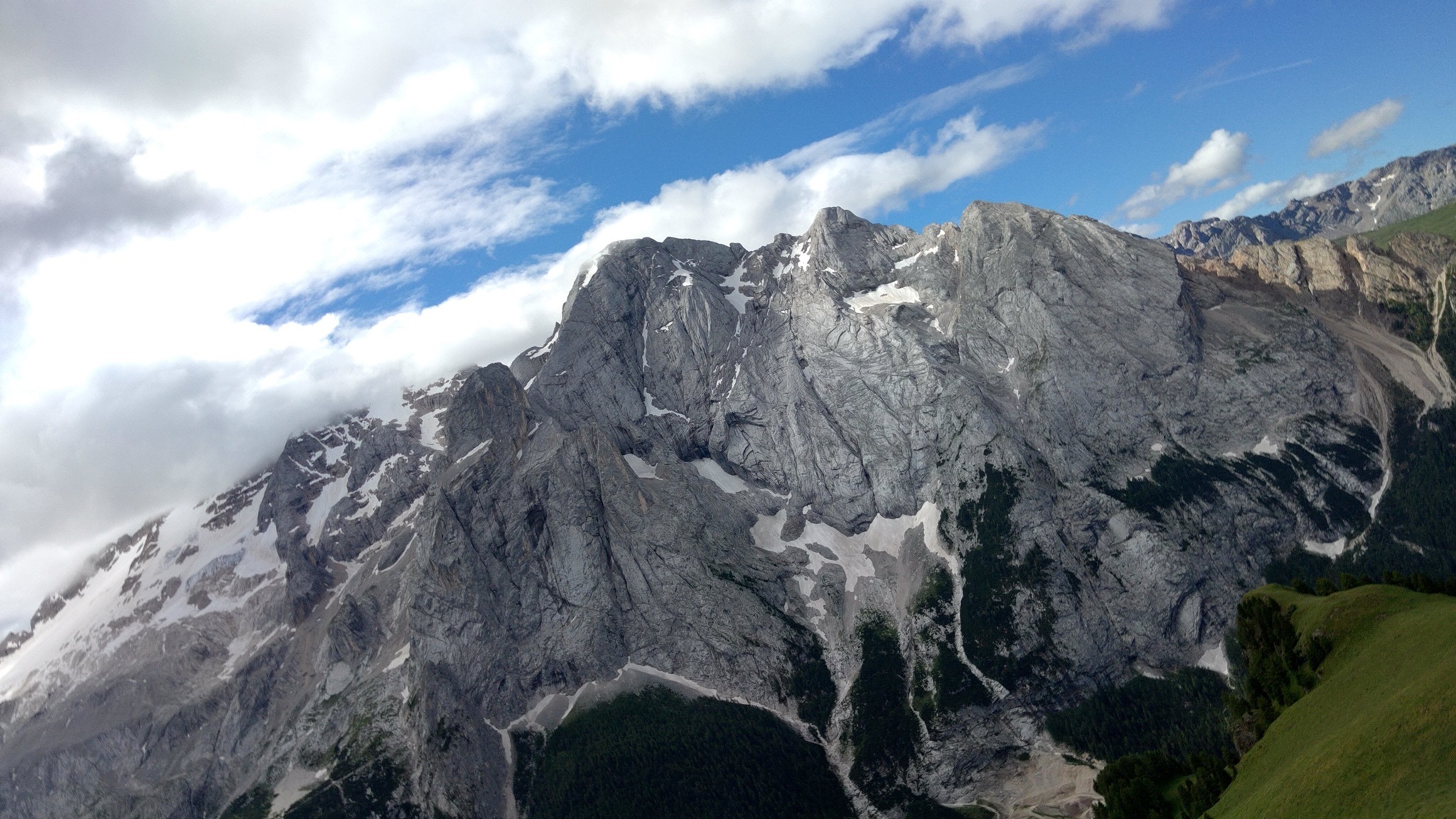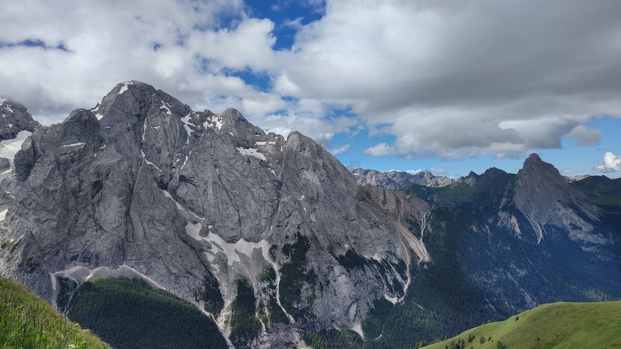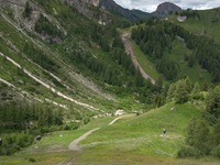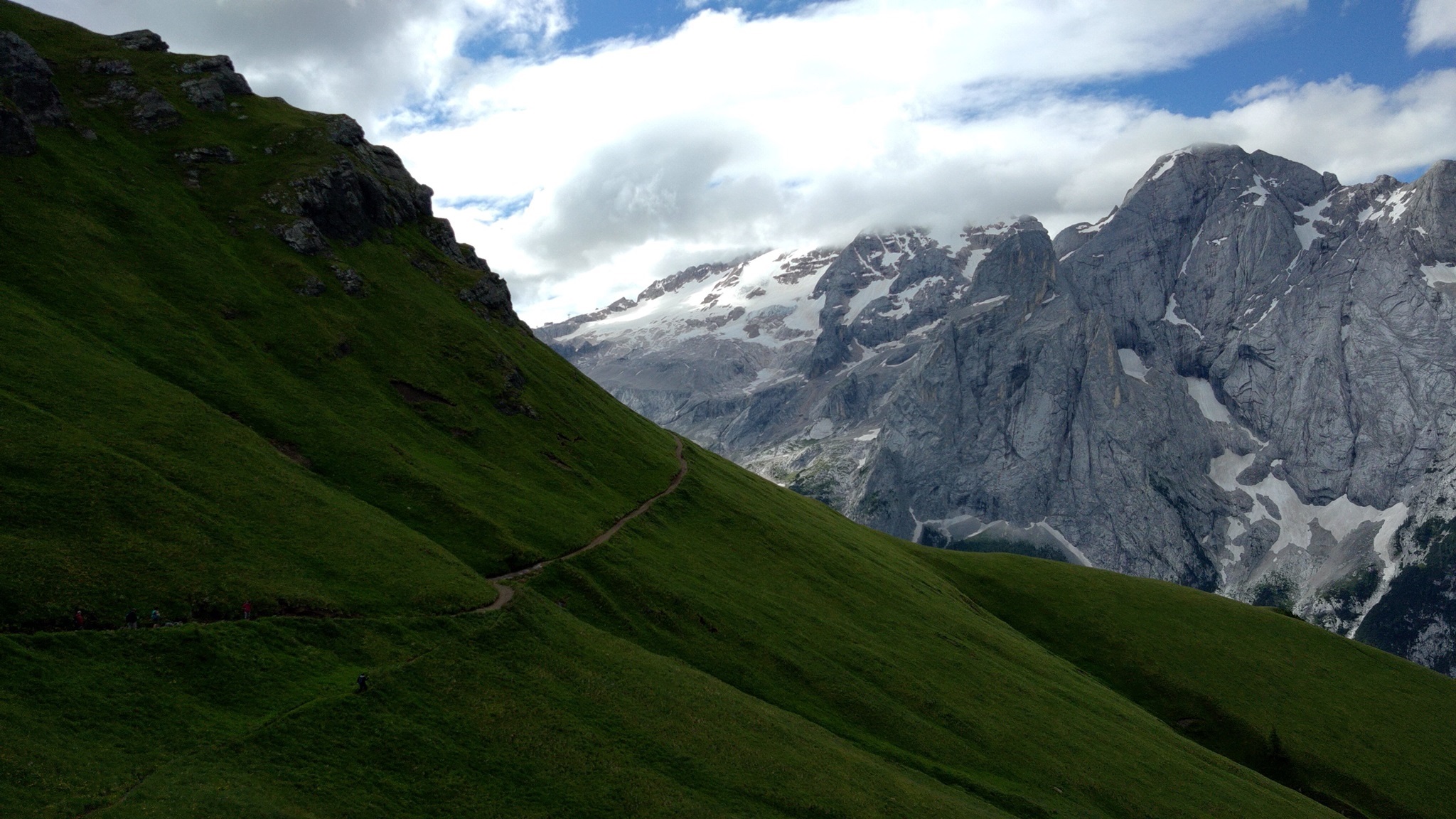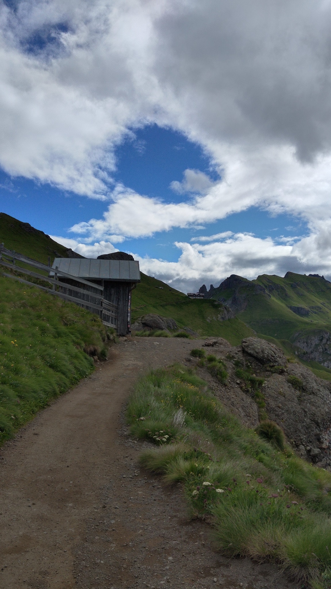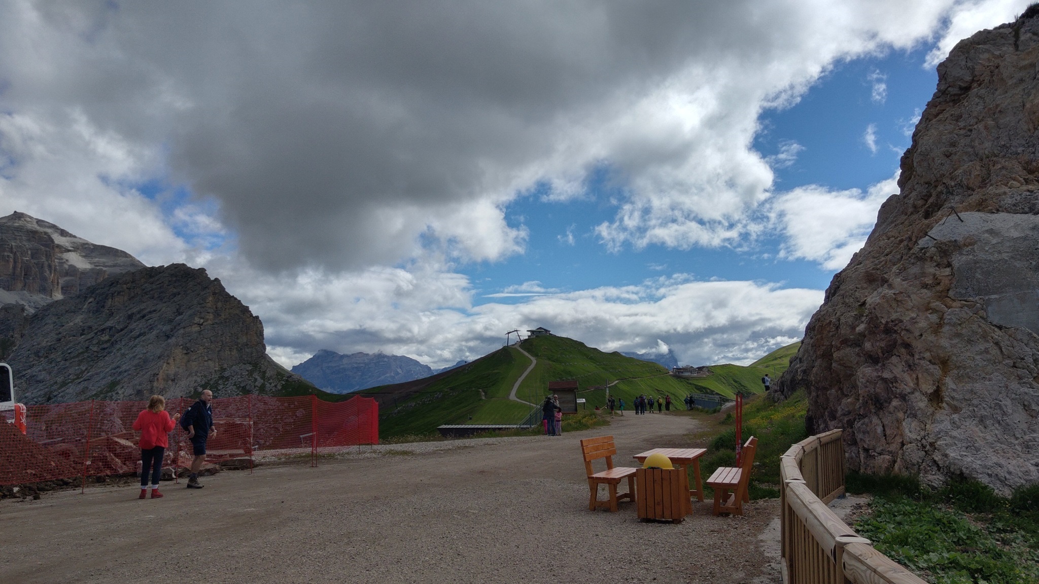 Am Hang entlang geht es dann rüberüber Rifugio Luigi Gorza nach Arraba und über die Straße hoch zum Passo Campolongo.