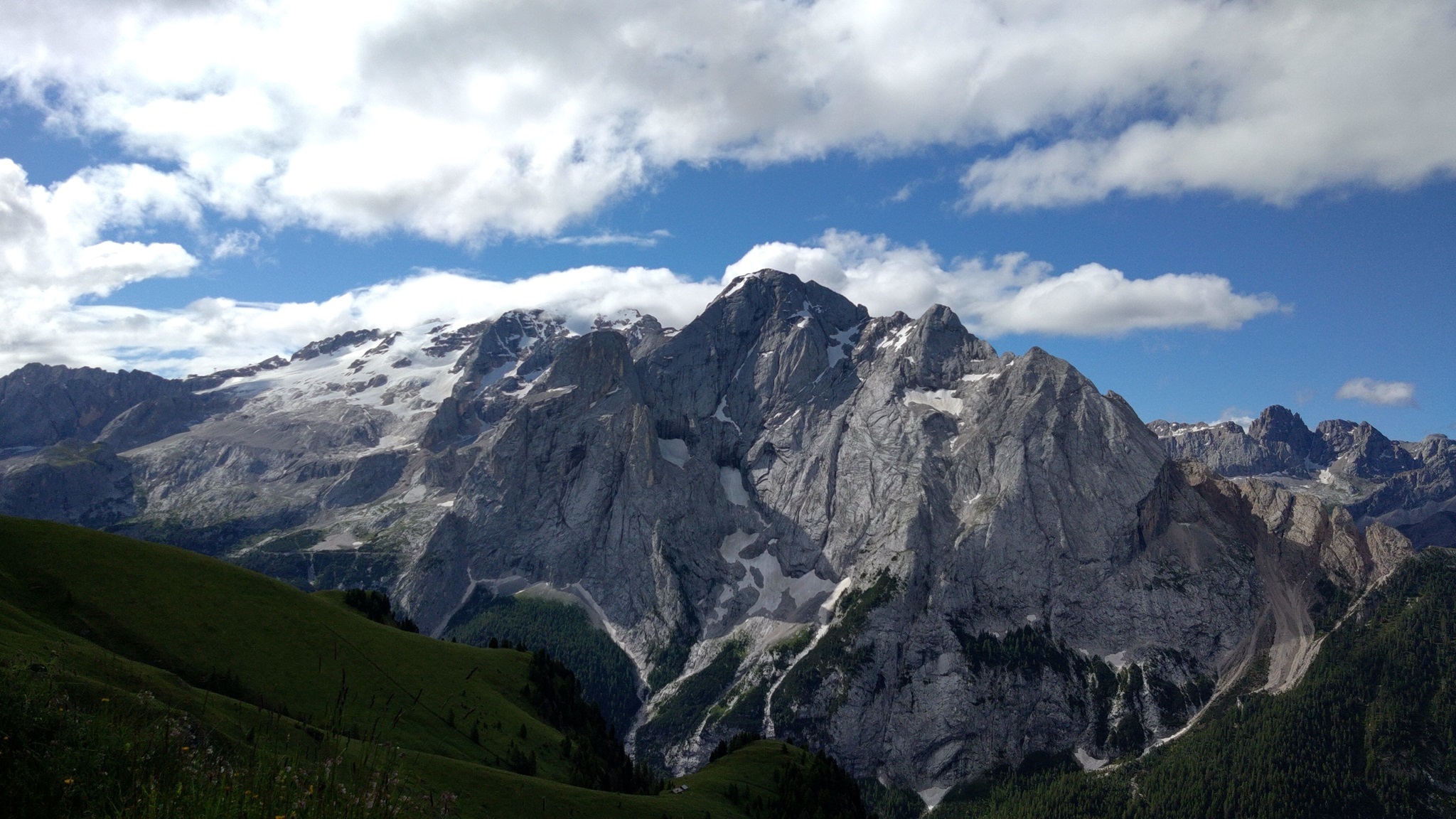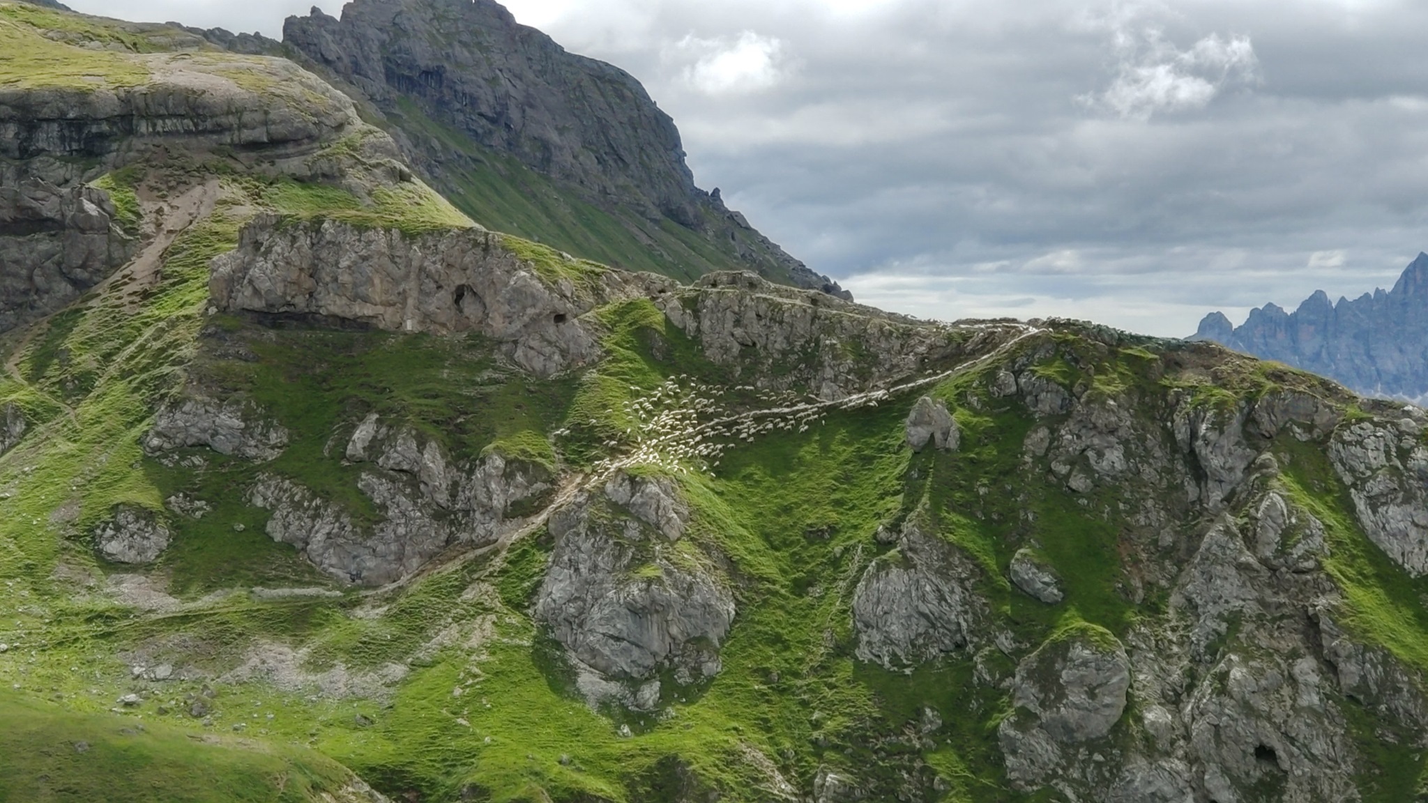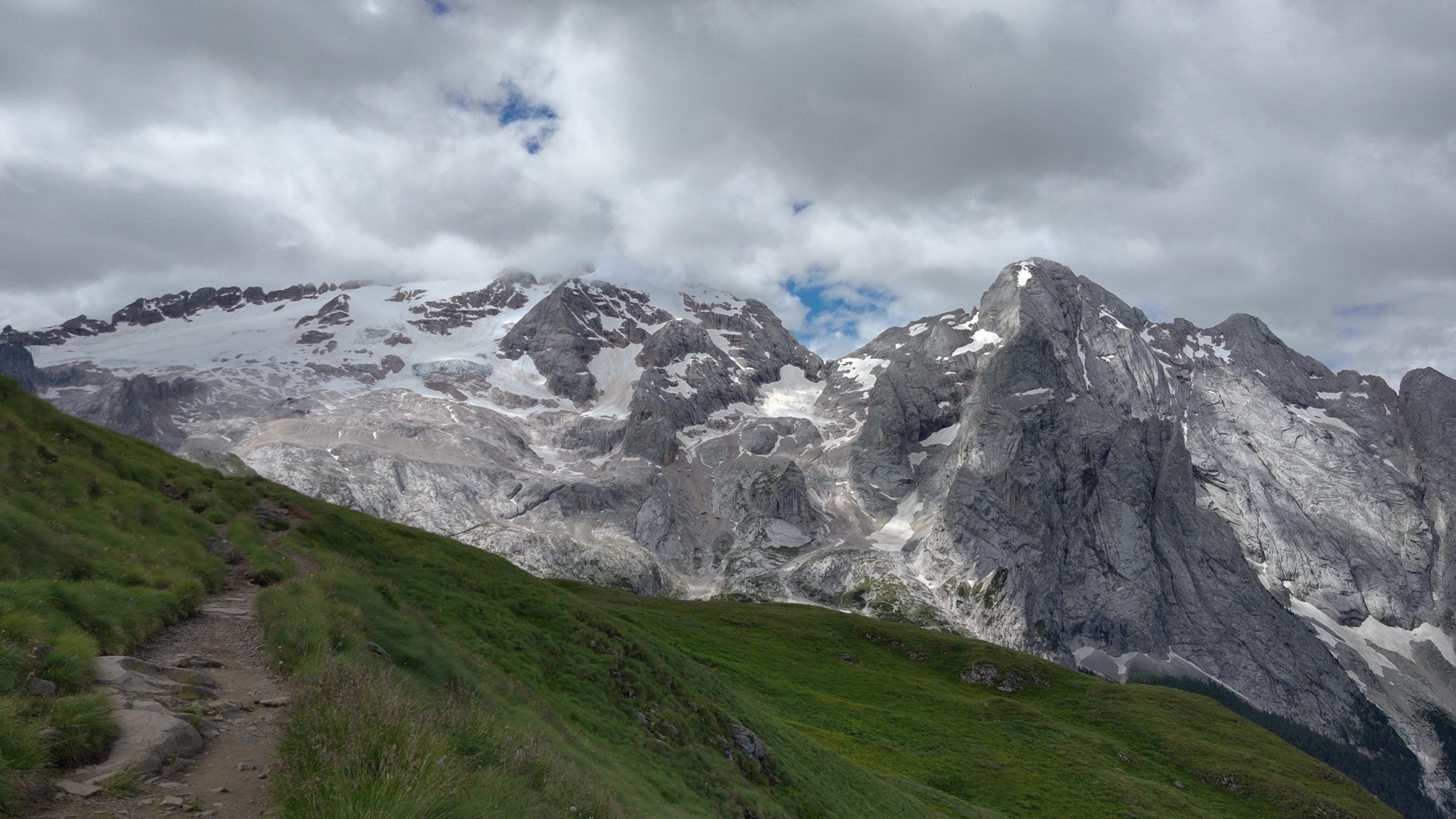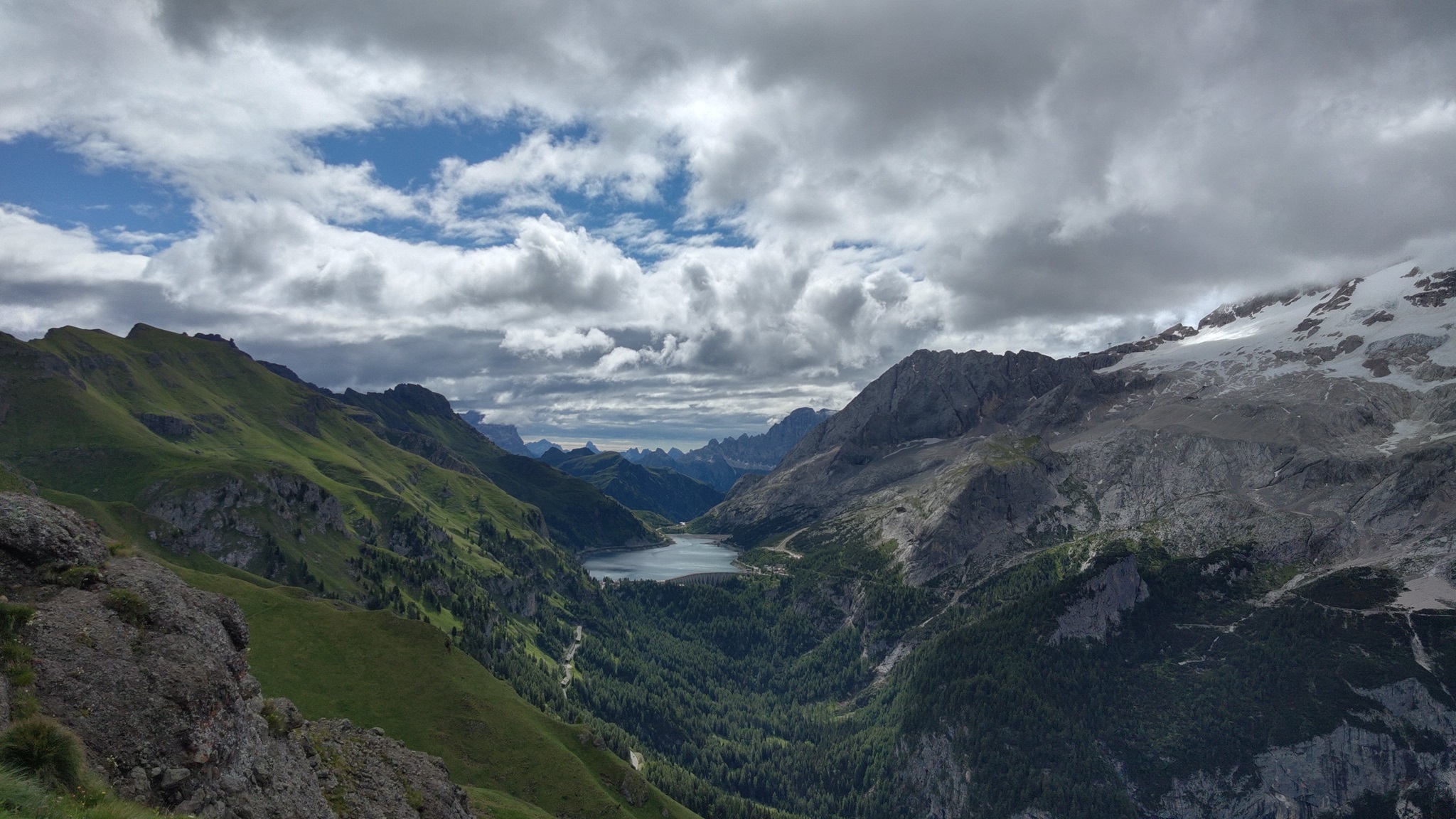 Am Hang entlang geht es dann rüberüber Rifugio Luigi Gorza nach Arraba und über die Straße hoch zum Passo Campolongo.