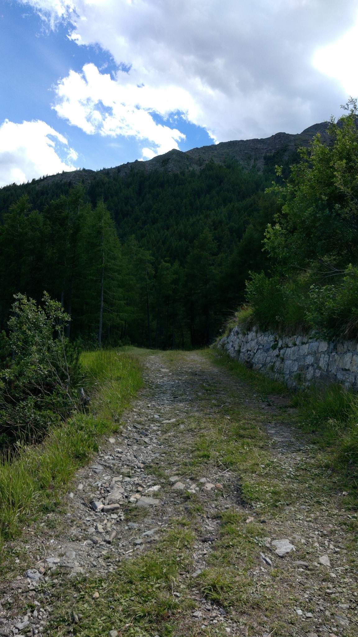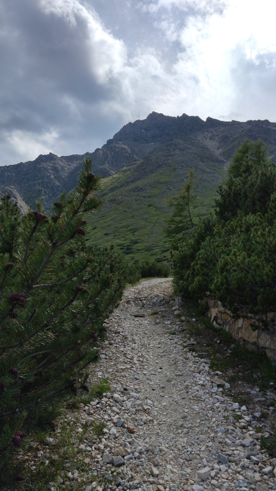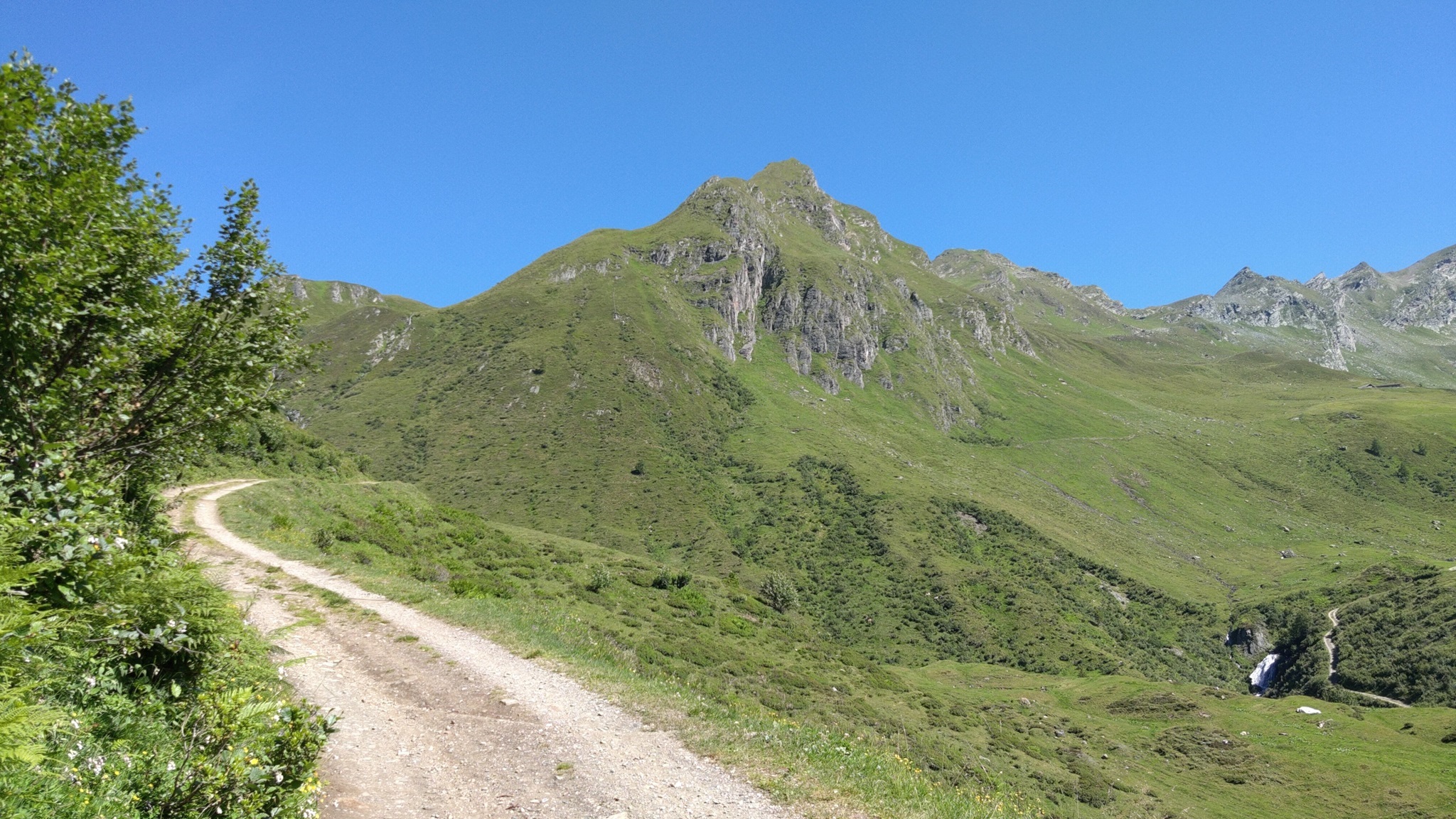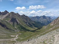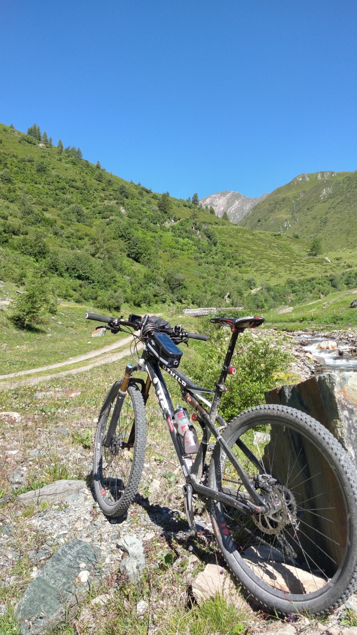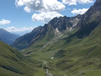 Unten im Tal an der Straße angekommen geht es links und gleich wieder rechts zum Schlüsseljoch hinauf. Die ersten 400 Höhenmeter sind noch fahrbar, danach ist wieder mal schieben angesagt.