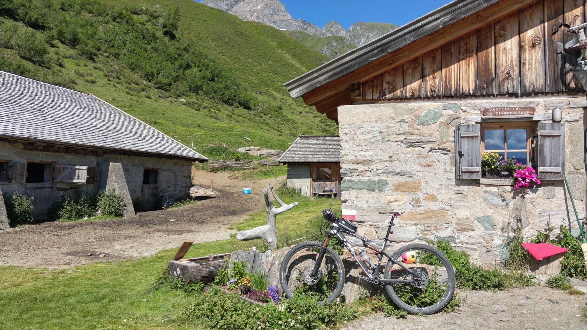 Der Weg zweigt dann nach links ab und man erreicht die Weitenbergalm (ca. 11.00 Uhr). Nach einer guten Stärkung (Kaiserschmarrn ist sehr zu empfehlen) geht es weiter bergauf bis das Fahren nicht mehr möglich ist.