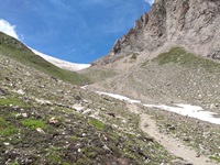 Die letzten Meter zum Joch sind sehr steil und je nach Winter auch noch mit Schnee bedeckt. Bitte auf festen Tritt achten.